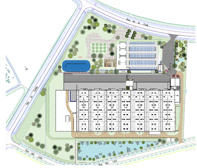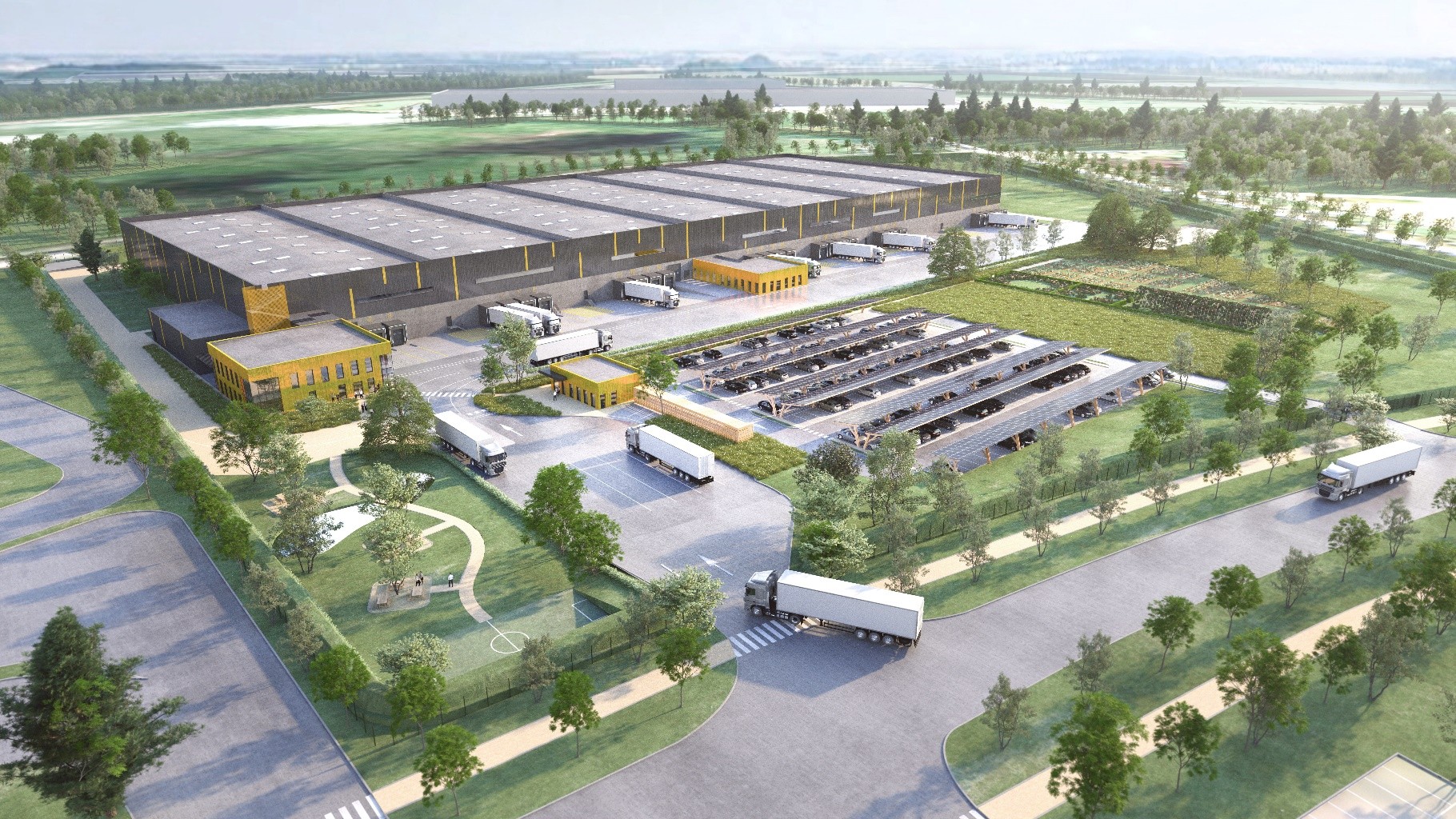 Réalisation d’un entrepôt de 7 cellules de 25 000m² à destination d’un parfumeur français très connu. Centrale solaire sur 100% des places de parking car impossibilité en toiture entrepôt du fait de l’ICPE (déclaration). Mécanisation de 30% de la surface de l’entrepôt. Bâtiment BREEAM niv. Very Good. 2 extensions pour 6 000m² prévues.